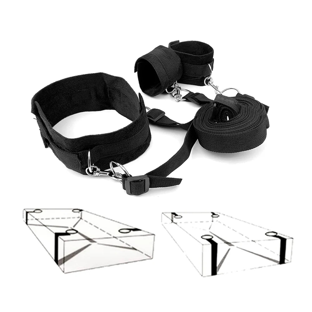 Este amarre complementará la experiencia del sumiso/a, restringiendo su movilidad parcialmente y dejándolo/a sujeto a la cama o punto duro, permitiendo así su uso y dominación. Las esposas puede intercambiar usos ya que pueden ser combinadas y separadas, sea para muñeca, pies y/o cuello.