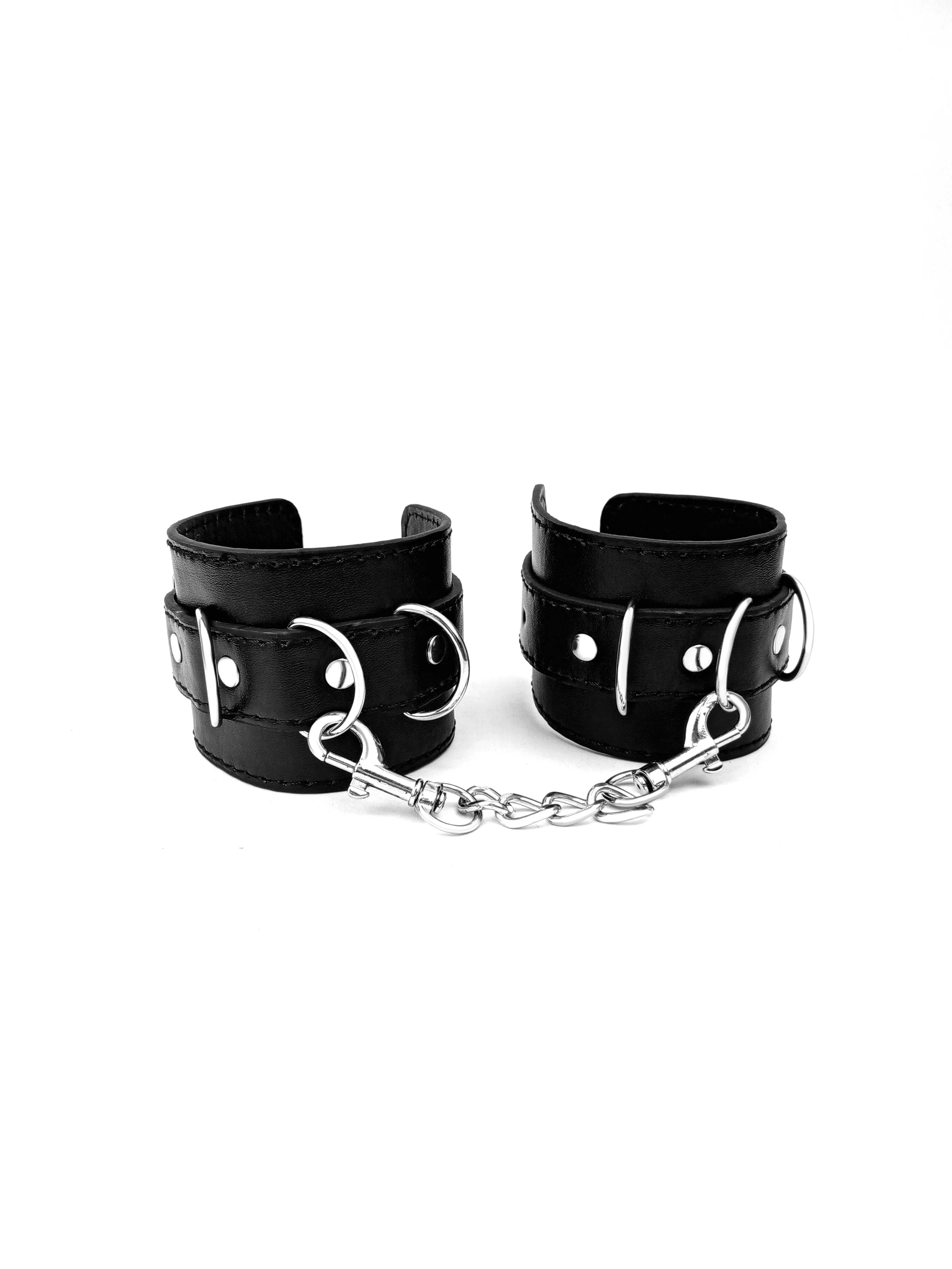 Fabricadas en cuero sintético de alta calidad, son suaves al contacto con la piel, cómodas de usar y cuentan con un cierre ajustable que se adapta a diferentes tamaños. Su cadena metálica desmontable añade versatilidad, permitiéndote experimentar con seguridad y confianza.