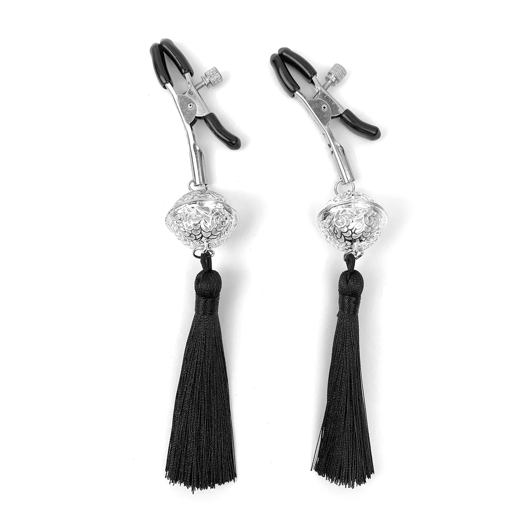 Lindas pezoneras decorativas con cascabel. Aumenta el deseo y el placer. Los tornillos delanteros pueden girar para aumentar y disminuir la presión.