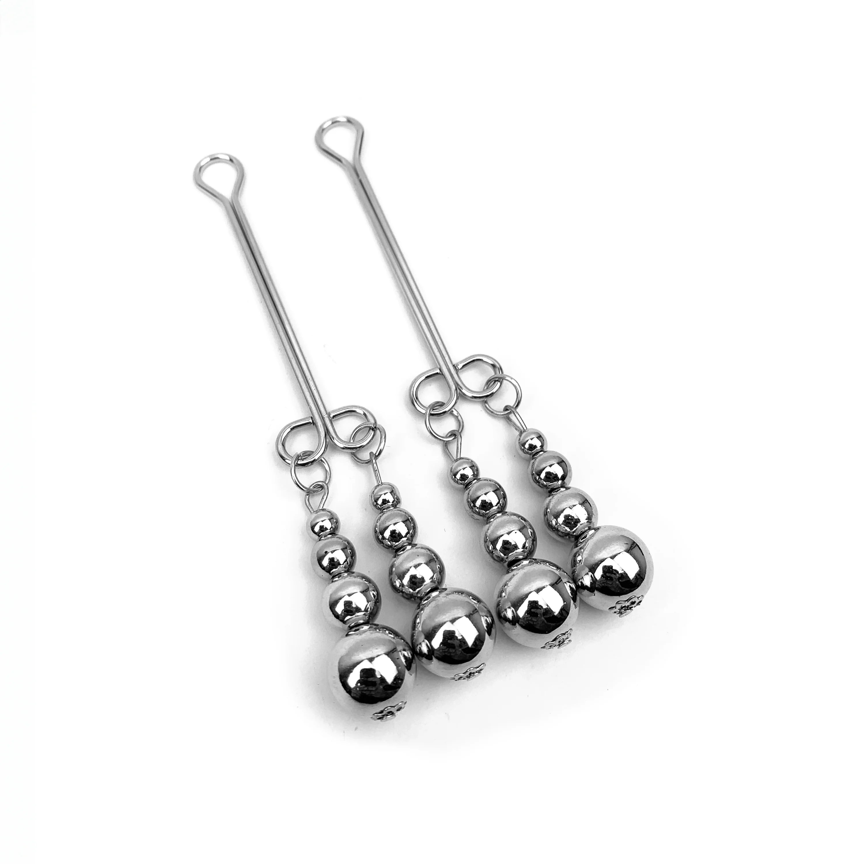 Pezoneras en forma de hebilla con perlas decorativas, ideales para juegos eróticos en pareja y aumentar el deseo.